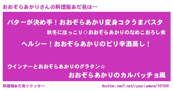 | 男性向けラノベタイトル風あだ名 | 『Re:おおぞらあかりから始める異世界生活』 |