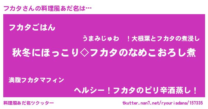 | ヘコむあだ名 | 『なまこ酢』『フカタ(笑)』『フカお』 |