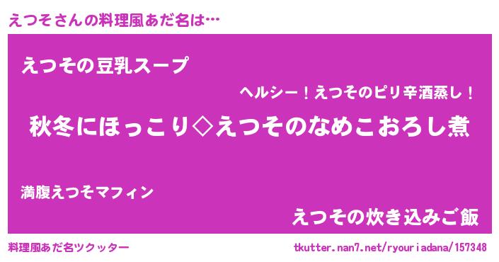 | 意味不明あだ名 | 『とにかく怪しいえつそ』『自称えつそ』 |