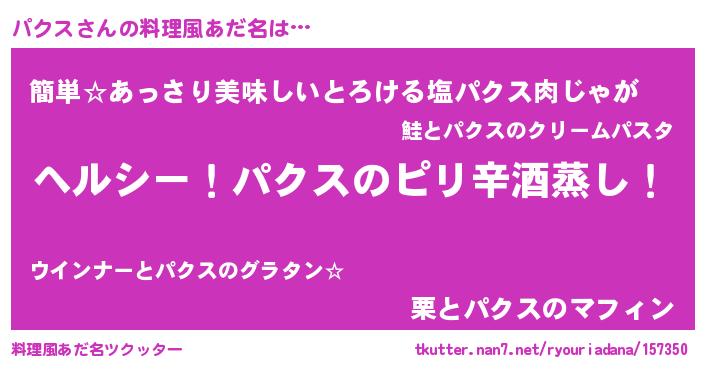 | 意味不明あだ名 | 『自称パクス』『永久保存パクス』 |