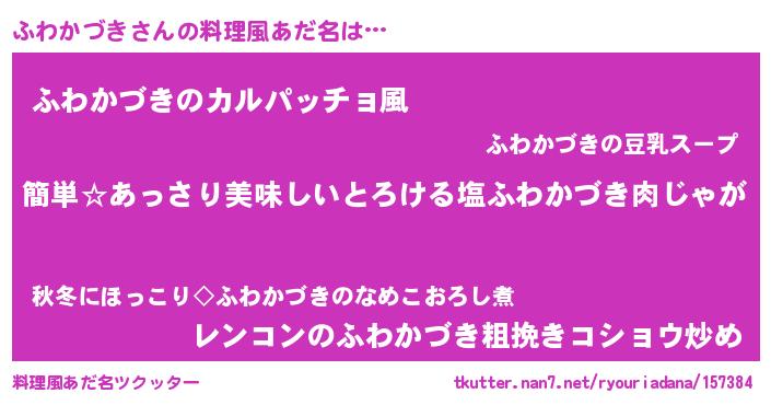 | 胡散臭い通販商品みたいなあだ名 | 『前代未聞の健康食品…その名も「ふわかづき」』 |