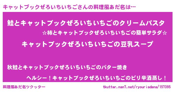 | 胡散臭い通販商品みたいなあだ名 | 『信頼と実績のサプリメント…その名も「キャットブックぜろいちいちご」』 |