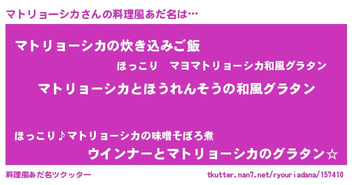 | 欧米人風あだ名 | 『トリンドルマトリョーシカ』 |