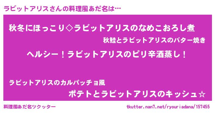 | 男性向けラノベタイトル風あだ名 | 『Re:ラビットアリスから始める異世界生活』 |