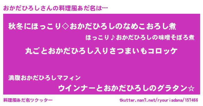 | 恥ずかしいあだ名 | 『おかっちょ』『プリティーおかだひろし』 |