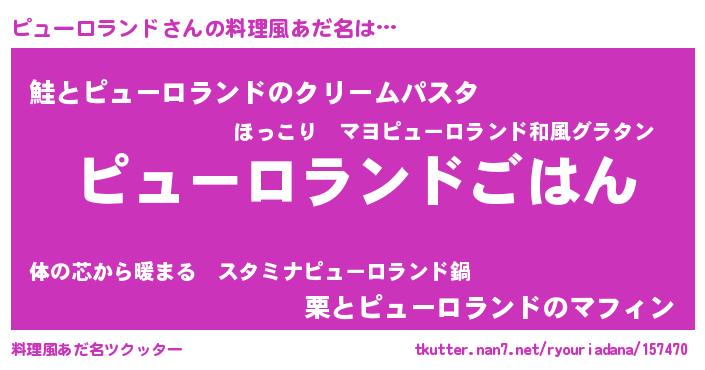 | 男性向けラノベタイトル風あだ名 | 『ピューロランドスレイヤー』 |