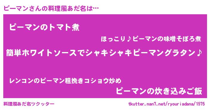 | 男性向けラノベタイトル風あだ名 | 『ピーマンの嫁は女の子じゃないと思った?』 |