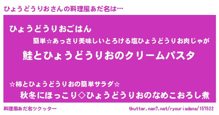 | 男性向けラノベタイトル風あだ名 | 『ノーゲーム・ノーヒョウドウリオ』 |