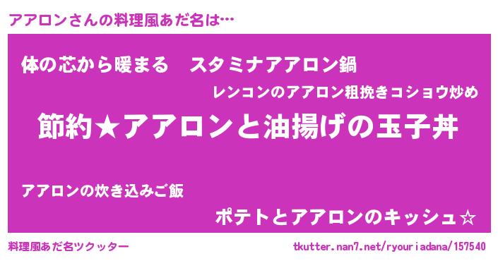 | 胡散臭い通販商品みたいなあだ名 | 『モテモテ間違いなし水晶球…その名も「アアロン」』 |