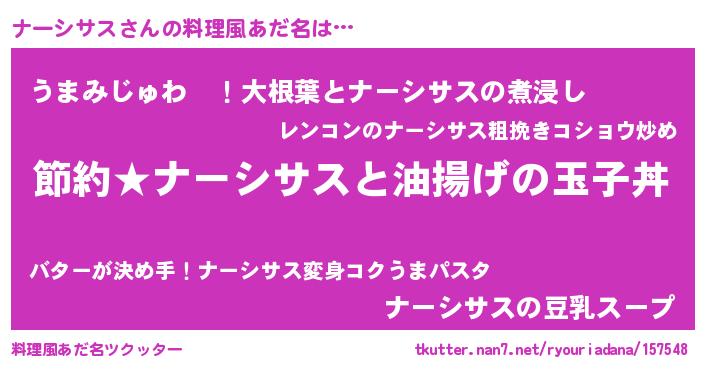 | 意味不明あだ名 | 『ペロリンナーシサス』『自称ナーシサス』 |