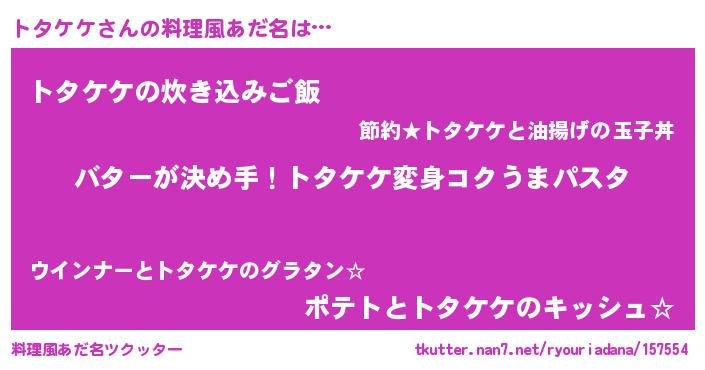 | 女子向けラノベタイトル風あだ名 | 『トタケケ恋絵巻』『トタケケ伯爵の花嫁』 |