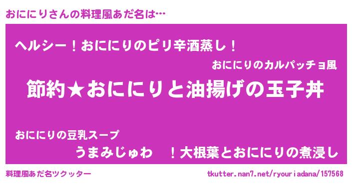 | 欧米人風あだ名 | 『マイケルおににり』『ウサインおににり』 |