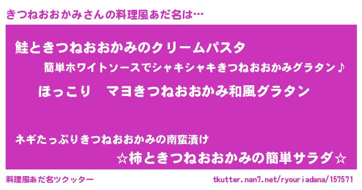 | 男性向けラノベタイトル風あだ名 | 『この素晴らしい世界にきつねおおかみを!』 |