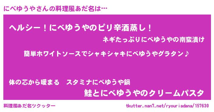 | 男性向けラノベタイトル風あだ名 | 『にべゆうやの嫁は女の子じゃないと思った?』 |