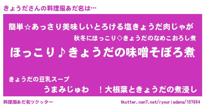 | ファンタジー風あだ名 | 『キョフェル』『キョディッシュ』 |