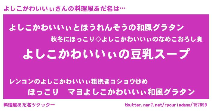 | 意味不明あだ名 | 『とにかく怪しいよしこかわいいぃ』 |
