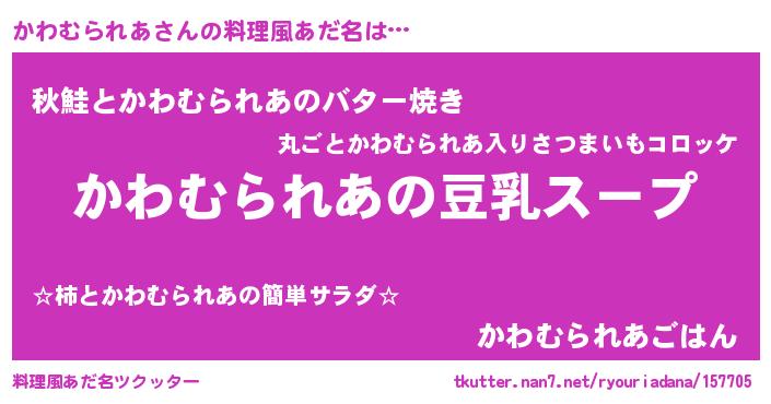 | 意味不明あだ名 | 『とにかく怪しいかわむられあ』 |