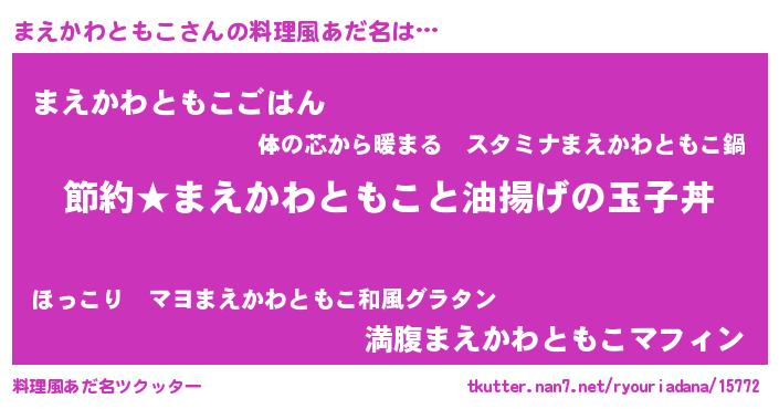 | ヘコむあだ名 | 『まえにゅー』『まえかわともこ(遠い目)』 |