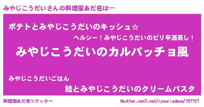 | 意味不明あだ名 | 『住所不定無職みやじこうだい(71歳)』 |