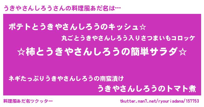 | ピコ太郎風あだ名 | 『ウキ十郎』『ウウ太郎』『ウコ三郎』 |