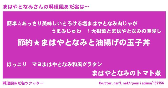 | ヘコむあだ名 | 『まはにー』『まはやとなみ(震え声)』 |