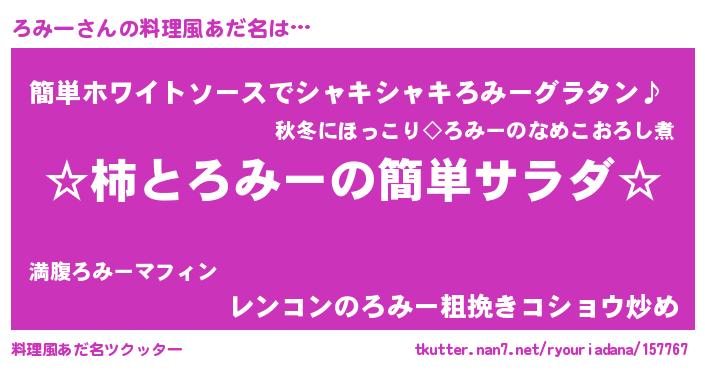 | ヘコむあだ名 | 『ろみっぺ』『ろみー(笑)』『つくし』 |