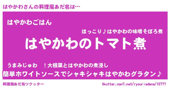 | 女子向けラノベタイトル風あだ名 | 『はやかわ夫妻のなれそめ』 |