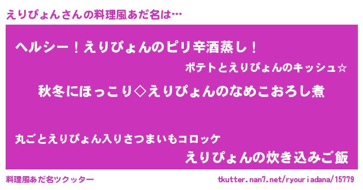 | 男性向けラノベタイトル風あだ名 | 『えりぴょんに滅ぼされるだけの簡単なお仕事です』 |
