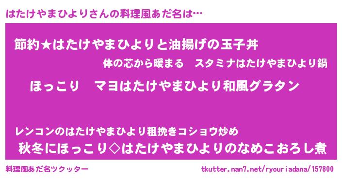 | ヒーロー風カッコイイあだ名 | 『仮面ハタダー』『ネオハタケヤマヒヨリ』 |