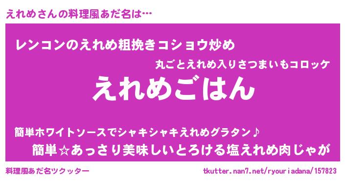 | 意味不明あだ名 | 『しいたけ科えれめ属』『自称えれめ』 |