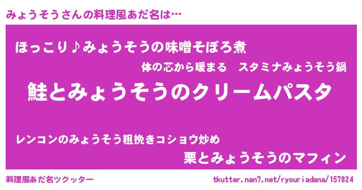 | ヒーロー風カッコイイあだ名 | 『天空の使者みょうそう』『仮面ミョダー』 |