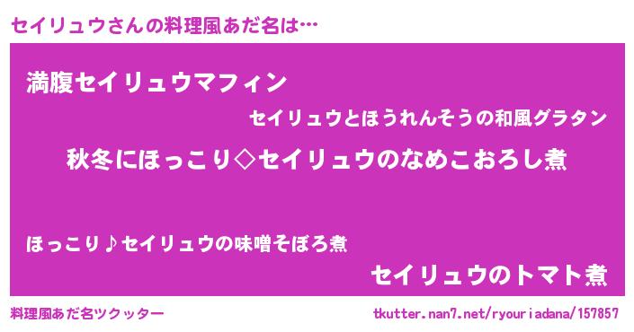 | ヘコむあだ名 | 『セイリュウ(笑)』『セイっふぃ~』 |