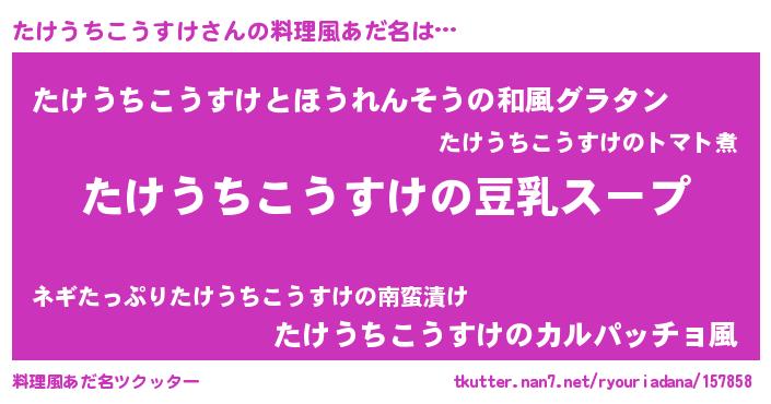 | 意味不明あだ名 | 『とにかく怪しいたけうちこうすけ』 |
