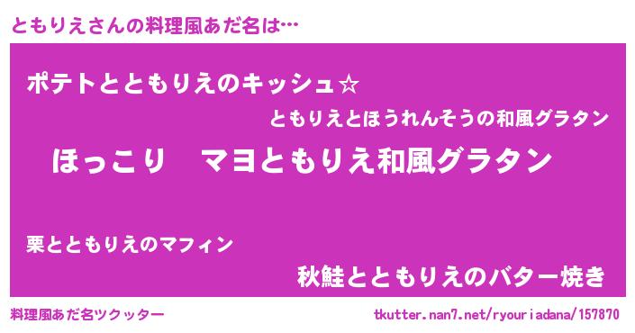 | 意味不明あだ名 | 『住所不定無職ともりえ(10歳)』 |