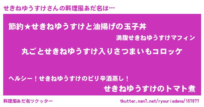 | 意味不明あだ名 | 『住所不定無職せきねゆうすけ(6歳)』 |
