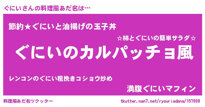 | ピコ太郎風あだ名 | 『グコ二郎』『ピコグ郎』『グニ次郎』 |
