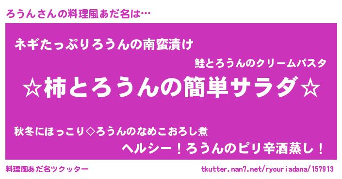 | 自動車の名前っぽいあだ名 | 『フェローウ』『ロウティマ』『ロンR』 |