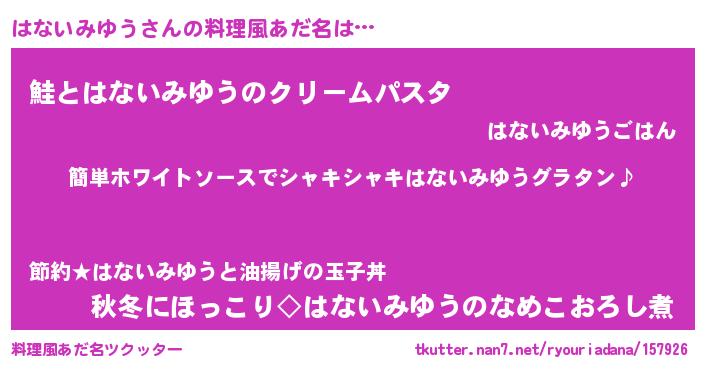 | ポケモン風あだ名 | 『ヒハナイミユウ』『ハックウザ』 |