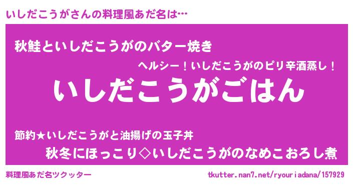 | 胡散臭い通販商品みたいなあだ名 | 『絶対に幸福をもたらす健康食品…その名も「いしだこうが」』 |