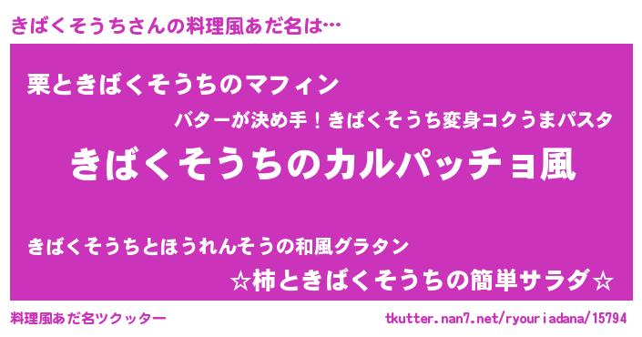 | 女子向けラノベタイトル風あだ名 | 『きばくそうちが死なない童話 林檎のきばくそうちの診療簿』 |