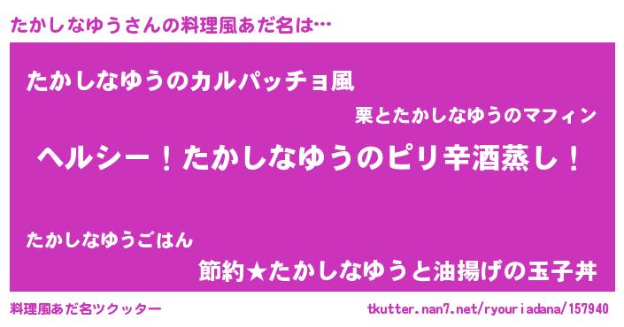 | 胡散臭い通販商品みたいなあだ名 | 『芸能人もオススメする高麗人参…その名も「たかしなゆう」』 |