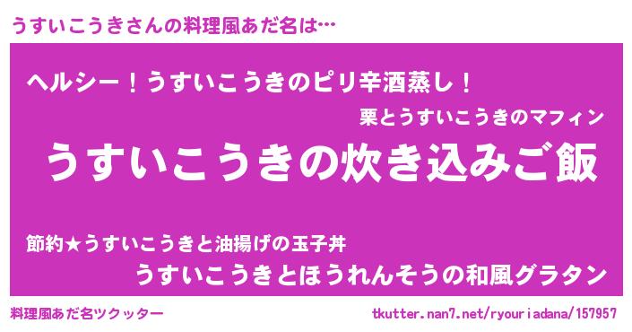 | 意味不明あだ名 | 『自称うすいこうき』 |