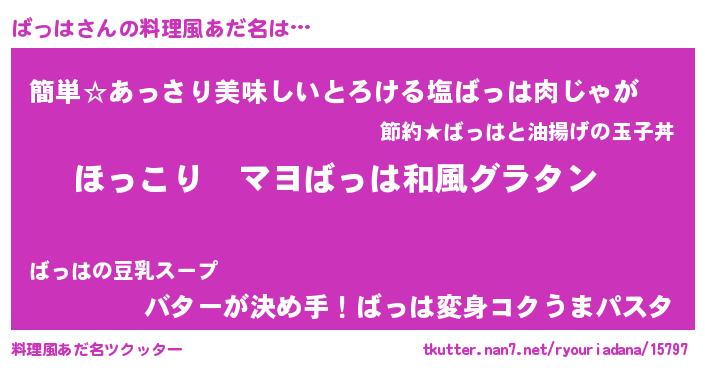 | 意味不明あだ名 | 『住所不定無職ばっは(14歳)』 |