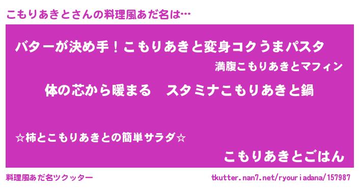 | 意味不明あだ名 | 『こもりあきとフォーエバー』 |