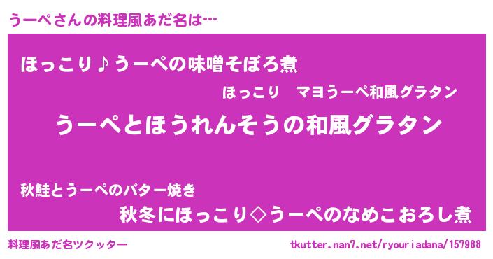 | 意味不明あだ名 | 『つくし科うーぺ属』『ペロリンうーぺ』 |