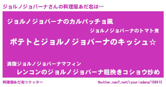 | 男性向けラノベタイトル風あだ名 | 『ジョルノジョバーナの嫁は女の子じゃないと思った?』 |