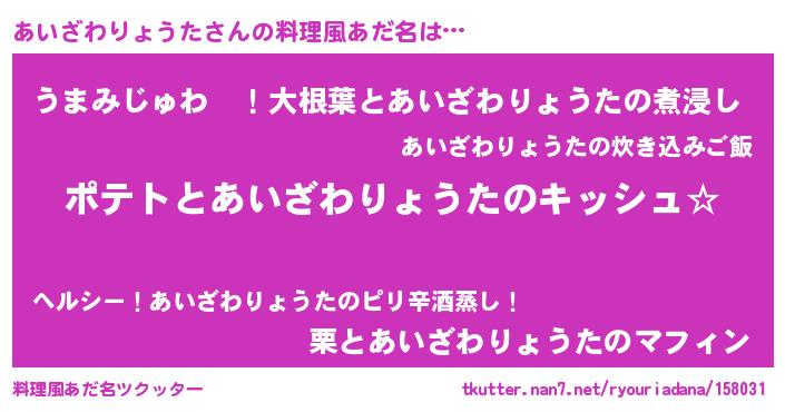 | 男性向けラノベタイトル風あだ名 | 『あいざわりょうたの嫁は女の子じゃないと思った?』 |