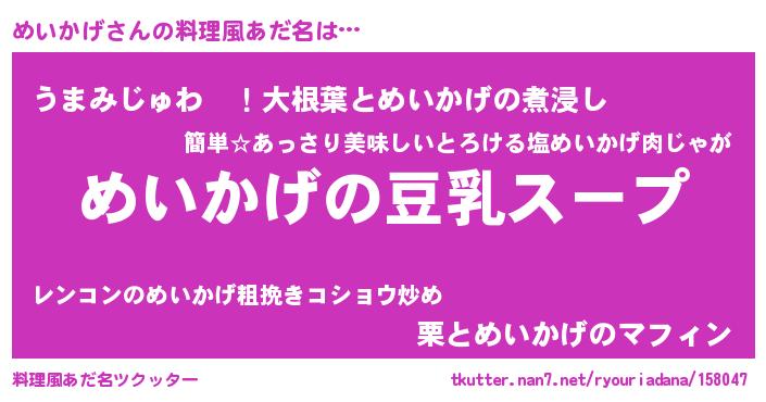| 意味不明あだ名 | 『とにかく怪しいめいかげ』 |