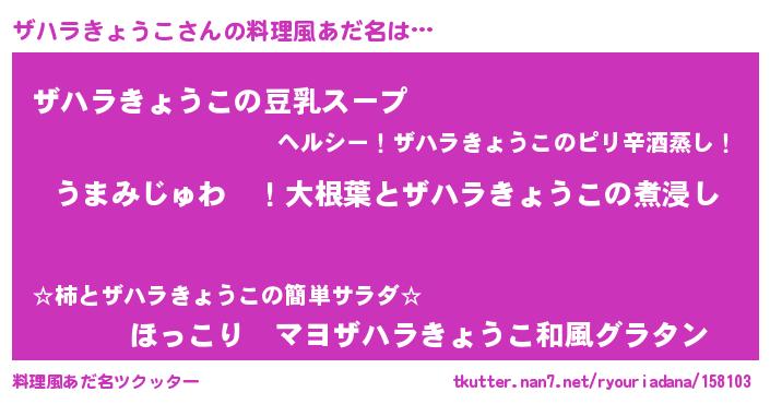 | 意味不明あだ名 | 『ザハラきょうこフォーエバー』 |