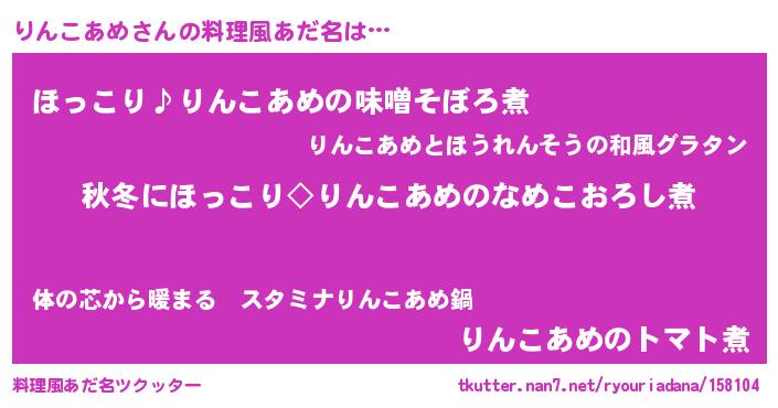 | 意味不明あだ名 | 『ペロリンりんこあめ』『自称りんこあめ』 |